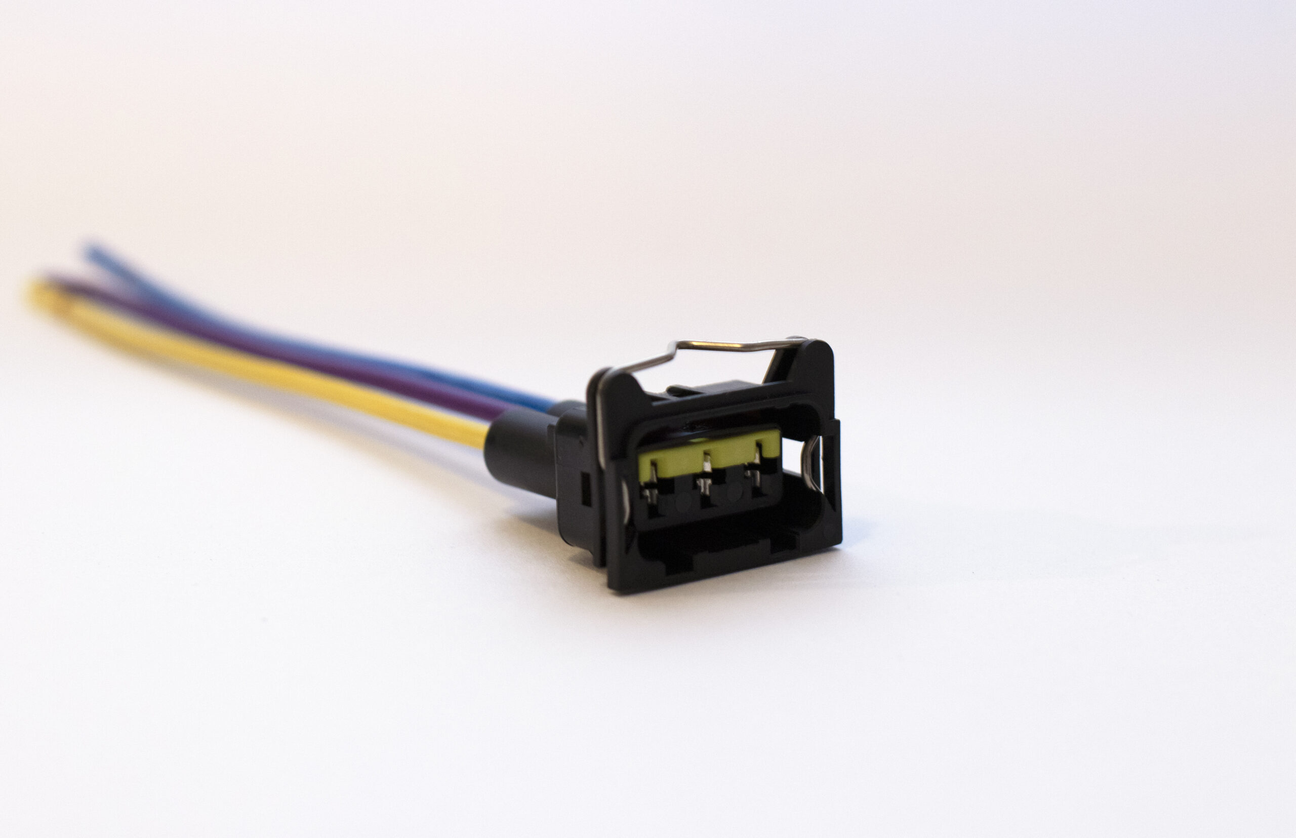 Conector 3 vias destinado a sensores de motor. Garante boa condução e encaixe confiável no chicote.